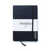 Taccuino a righe con copertina semirigida, segnalibro ed elastico in tinta.